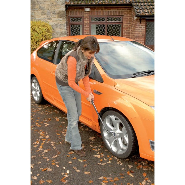 Supplied with two 1/2" sq. drive reversible sockets size 17 x 19 and 21 x 22mm, manufactured from chrome vanadium steel. Handle extends to 525mm which helps to increase torque on difficult wheel nuts. Display packed.