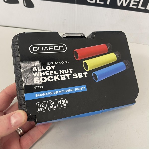 Draper Extra Long Alloy Wheel Nut Socket Set, 1/2" Sq. Dr. 150mm (3 Piece) (07121) has been added to your cart