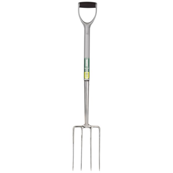 Soft handgrip, Y-dee handle attached to a steel cored, plastic coated shaft. Fitted with fully hardened, tempered and polished socket and tines. The overall length of 1050mm is beneficial for people 6ft tall and over, allowing a straighter back when digging, giving less strain and more leverage. Sold loose.