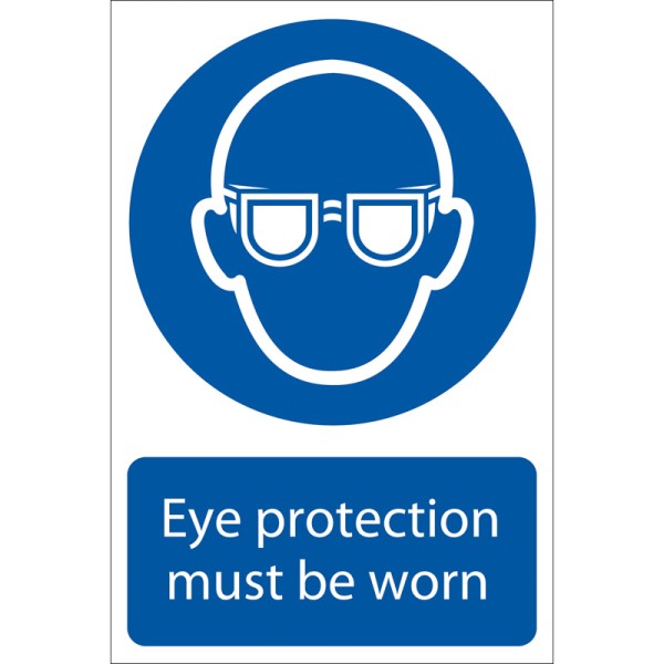 Warning sign states ‘Eye Protection must be worn’ printed with fade and UV resistant ink. Manufactured from 1mm PVC thats sized 200 x 300mm with ultra strong water based adhesive for fixing to the wall.