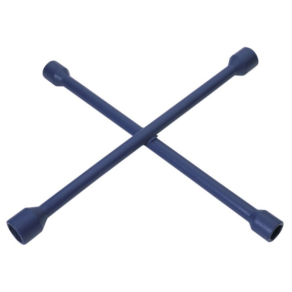 Heavy duty forged four way wheel nut wrench 17 x 19 x 21 x 22mm. Enamelled finish for corrosion protection. Arm length: 380mm. Sold loose.