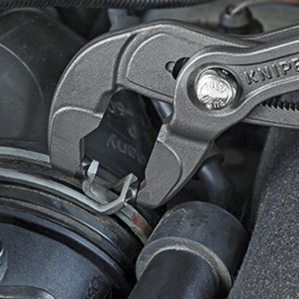 Professional Quality, exceptionally versatile hose clamp pliers fitted with rotating grip inserts. Used for removing spring band rings, standard or space saving clamps and simple spring wire hose clamps found in older vehicles and household appliances. The quick-set 25 position adjustment provides easy alteration for precise and repetitive working, useful when working with reinforced or very large spring band clamps. Display packed.