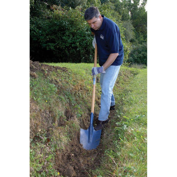 Extra long wooden shaft Irish pattern shovel. The hardened steel socket and V shaped blade are ideal for a host of building trades including bricklaying and groundwork.