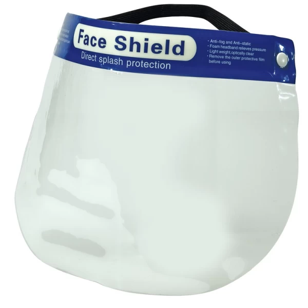 Lightweight face shield designed to protect the face from splashing and spraying of infectious or hazardous substances. Manufactured from PET materials offering maximum visibility. The foam headband and soft elastic strap help ensure all-day comfort.