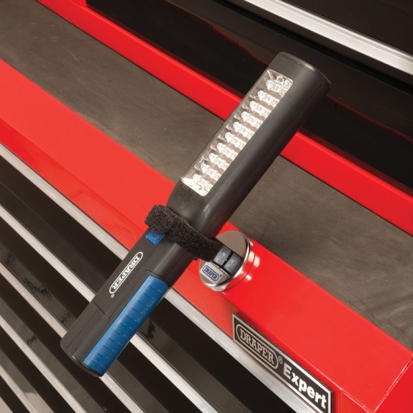 50mm hook and loop strap for holding different sized tools. The powerful magnets attach to the side of metal objects like toolboxes and cabinets providing useful and convenient tool storage.