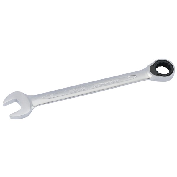 Open end set at 15°. ELO-Drive ring end manufactured with 72 teeth ratcheting mechanism - only 5° movement required to turn fastener, especially useful in confined spaces. Forged from chrome vanadium steel, hardened, tempered and matt chrome plated.