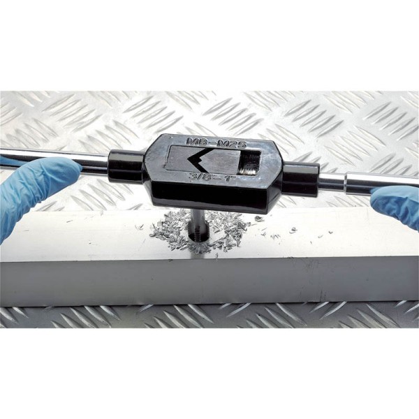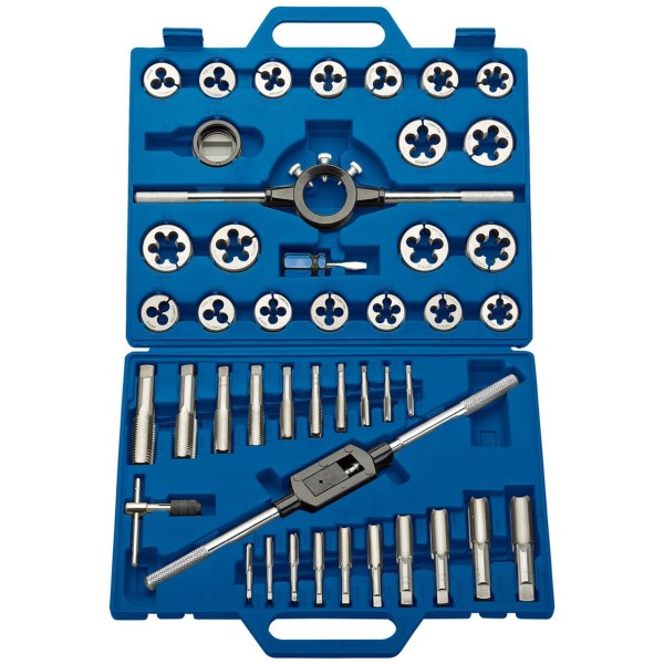 Manufactured from tungsten steel. Taps and dies suitable for cleaning and cutting threads on mild steel and aluminium. Packed in blow mould case with display sleeve.