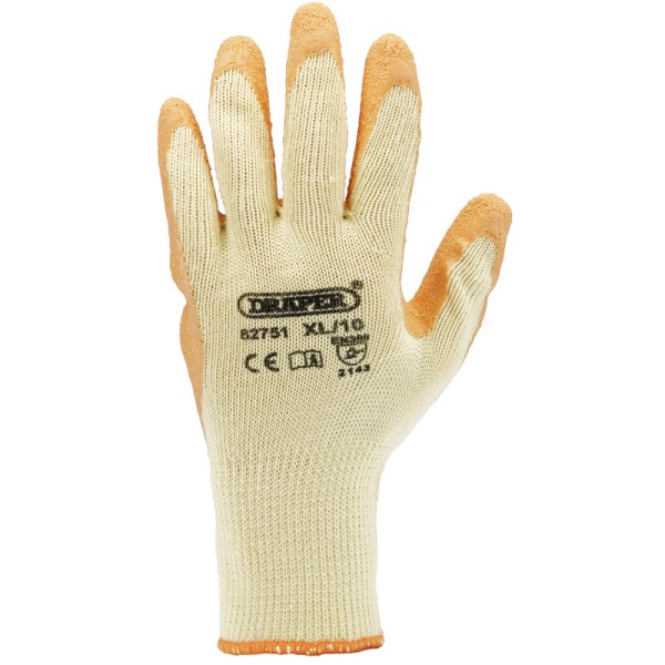 Draper Pack of Ten, Orange Heavy Duty Latex Coated Work Gloves - Extra Large has been added to your cart