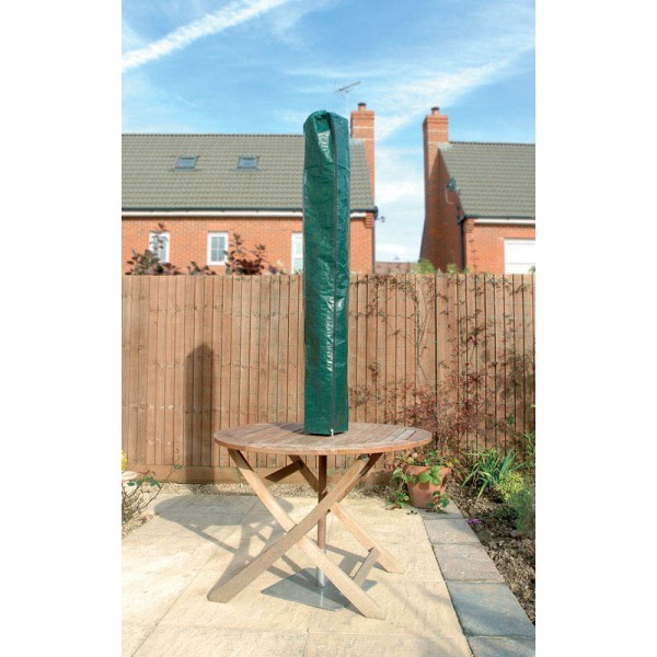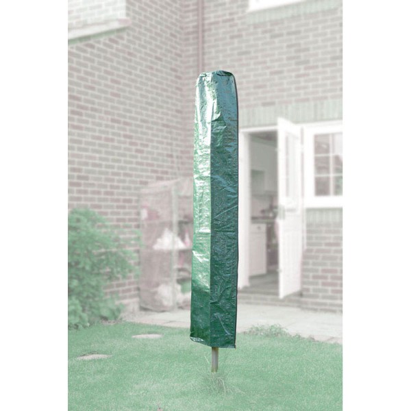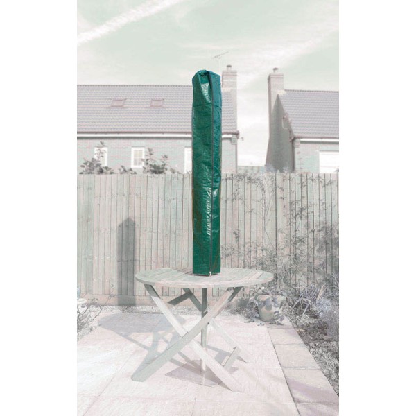 Dual purpose cover with full length zip. Suits most parasols/umbrella sizes. Heavy duty polyethylene. Polybag with header.
