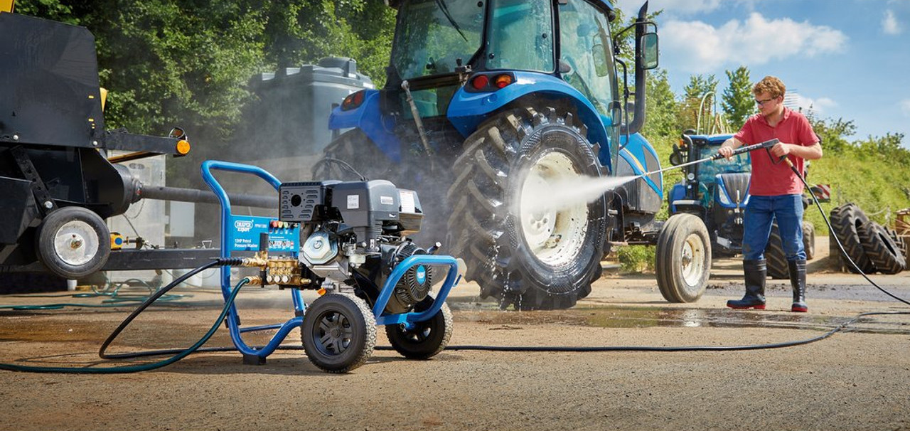 Expert Quality, For use where no mains power available, Heavy duty, Triplex brass pump head with pressure regulator, 4 stroke petrol engine, Supplied complete with 10M HP rubber hose with steel reinforcement, metal gun, five piece nozzle set, 1/4 inch plastic hose adaptor and a fuel funnel with hoseExpert QualityFor use where no mains power availableBrass pump head with pressure regulator4 stroke petrol engineWorking pump pressure: 234bar; flow rate: 12L/min (720L/hour): weight 55kgSupplied comp..