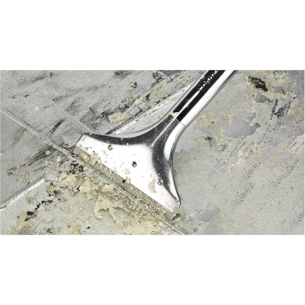 Expert Quality, long handled scraper ideal when stripping large areas of wallpaper, flaking paint or tiles. Fitted with a 4” wide, two-sided reversible blade, zinc alloy body and soft grip hollow handle allowing for blade storage. Compatible for use with Stock No. 17160 extension pole (sold separately).