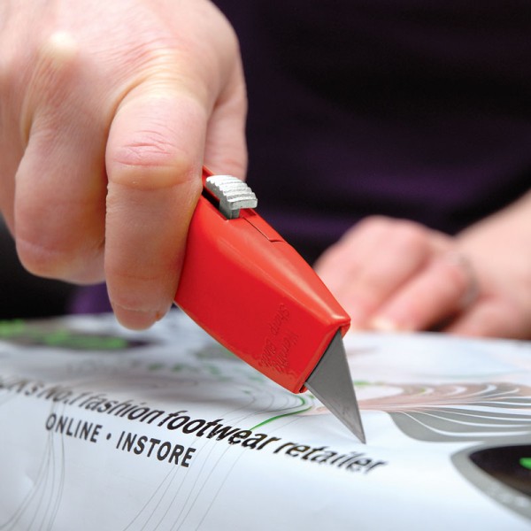Retractable pattern metal bodied knife complete with two blades. Display packed.