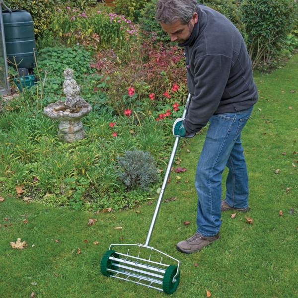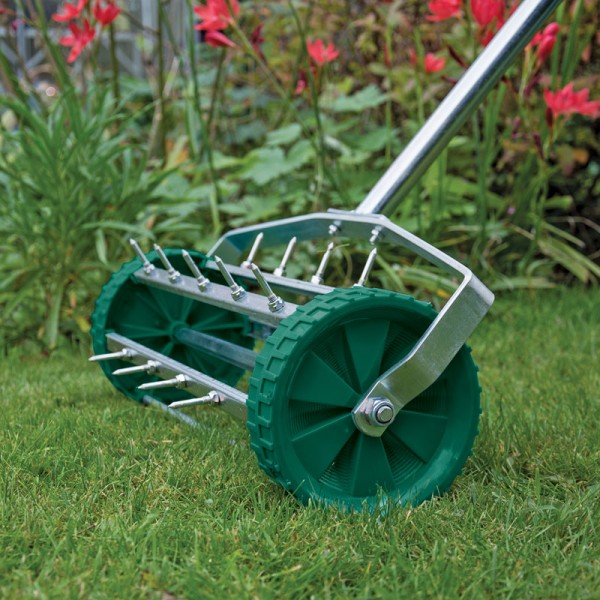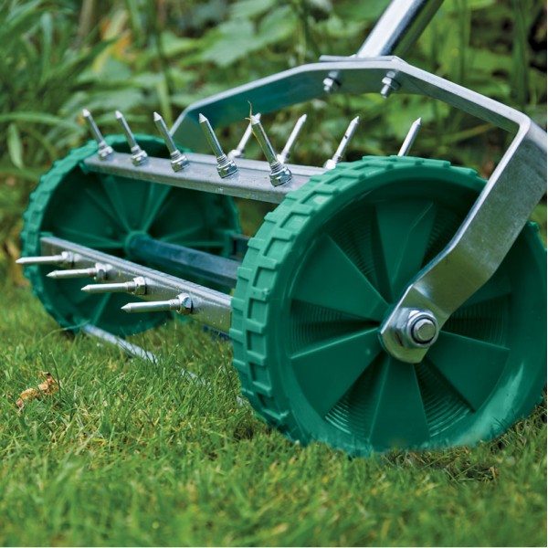 Easy to use, hand pushed lawn aerator, fitted with a galvanised steel drum, which has a total of 27 spikes designed for piercing the soil and improving the soil drainage. Display packed.