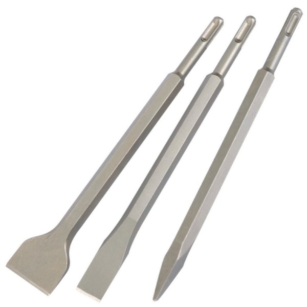 For use with machine with SDS+ system. Carbon steel hardened and tempered. Packed in plastic hang up wallet.