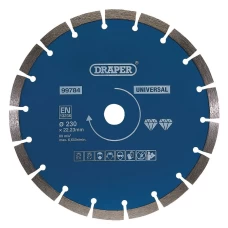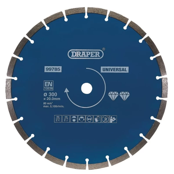 Hardened and tempered diamond blade with segmented rim for a faster cut. General purpose blade for use on concrete, bricks, stone, granite and marble. Suitable for dry and wet cutting, with optimum results when used wet. Compatible with petrol saws with a 20mm bore.