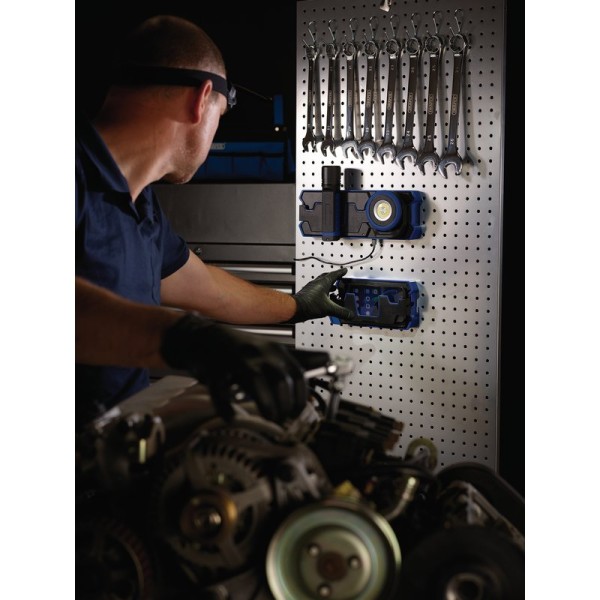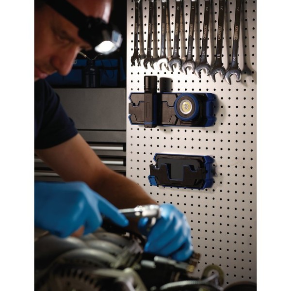 Fast wireless charging pad capable of charging one device at a time. Fitted with strong magnetic panels on the front and back to hold the device with a metal surface in place while charging. The LED charging indicator flashes green when charging. There is a pull-out phone holder suitable to hold QI enabled (wireless charging) smartphones up to 166 x 80 x 10mm in size. The charging pad is mountable to a non-metallic surface or wall using the two screw hole fixings (screws not supplied). IP20 rated. Compatible with the Draper range of wireless/USB rechargeable lights including Mini-Flood Light (Stock No. 65688), Head Torch (Stock No. 65689) and Hand Torch (Stock No. 65690) - sold separately. Supplied with USB-C charging cable and 3-pin U