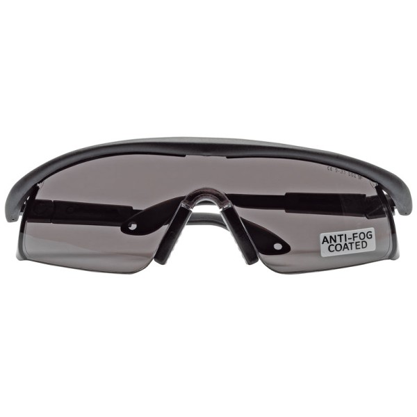 Lightweight safety glasses with smoked polycarbonate wrap-around anti-scratch and anti-fog lens. Soft rubber nosepiece and telescopic arms for a flexible, secure and comfortable fit.