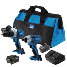 Storm Force® 20V kit, ideal for a multitude of tasks. Supplied with 20V combi drill, 20V 1/4" hex impact driver, 20V SDS+ rotary hammer drill, 20V 115mm angle grinder, 20V reciprocating saw, 20V circular saw, 20V orbital jigsaw, 20V random orbit sander, 20V oscillating multi-tool, 2 x 2.0Ah Li-ion batteries, 1 x 4.0Ah Li-ion battery and charger. All stored in a large, multi-pocket tool bag for easy transportation and storage.