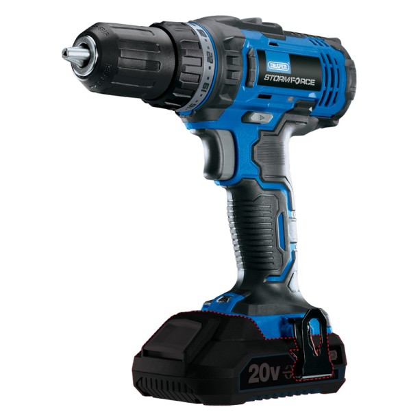 Part of the Draper Storm Force 20V Power Interchange series, 2 function Drill, Screwdriver, Two - speed gearbox, 26 torque control positions, Variable speed control with electronic brake, Spindle Lock, LED worklight, Batteries and chargers are available separately. Draper Storm Force® 20V interchangeable battery system allows you to combine one battery with any of the tools within the 20V Storm Force series (not compatible with Draper Storm Force® 10.8V).