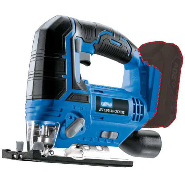 Part of the Draper Storm Force® 20V Power Interchange series, Quick change blade, 45 bevel cutting, 4 - speed settings, LED light, Dust blow and extraction, Variable speed, Supplied with a Hex key, Batteries and chargers are available separately. Draper Storm Force® 20V interchangeable battery system allows you to combine one battery with any of the tools within the 20V Storm Force series (not compatible with Draper Storm Force® 10.8V).