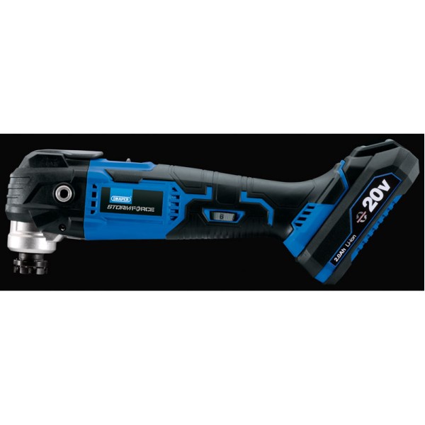 Part of the Draper Storm Force® 20V Power Interchange series, Quick - lock system, LED light, Variable speed, Supplied with a backing pad, 3 sanding sheets and offset universal cutting blade, Batteries and chargers are available separately. Draper Storm Force® 20V interchangeable battery system allows you to combine one battery with any of the tools within the 20V Storm Force series (not compatible with Draper Storm Force® 10.8V).