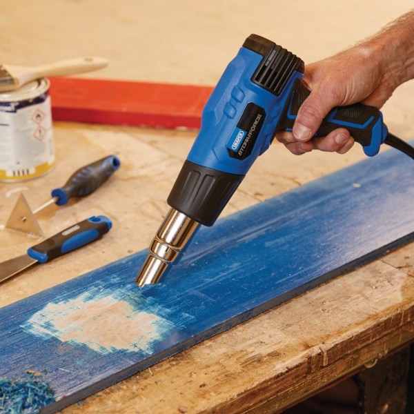 The versatility of a heat gun means it’s a must-have tool for the DIY enthusiast, hobbyist and professional tradesperson. This Storm Force heat gun is perfect for traditional purposes – stripping paint and wallpaper, welding and bending plastics. It's also great for other uses, such as thawing frozen pipes and getting rid of dents in cars. The heat gun has two heat settings (350 or 550 degrees) and two airflow settings (300 or 500L/min). A resettable thermal cut-out switches off the heat gun if it overheats, and the tool comes with a 2m rubber cable. A four-piece nozzle set is also included, with surface, reflector and concentrator nozzles to enable a range of tasks, including heating paint in a wooden frame while deflecting heat away from the glass.