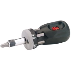 Special edition screwdriver and bit set. Stubby ratchet screwdriver plus range of metric 1/4" sockets and 25mm CRV insert bits. Screwdriver shaft manufactured from carbon steel. Forward and reverse with locking action and 1/4" magnetic bit holder.