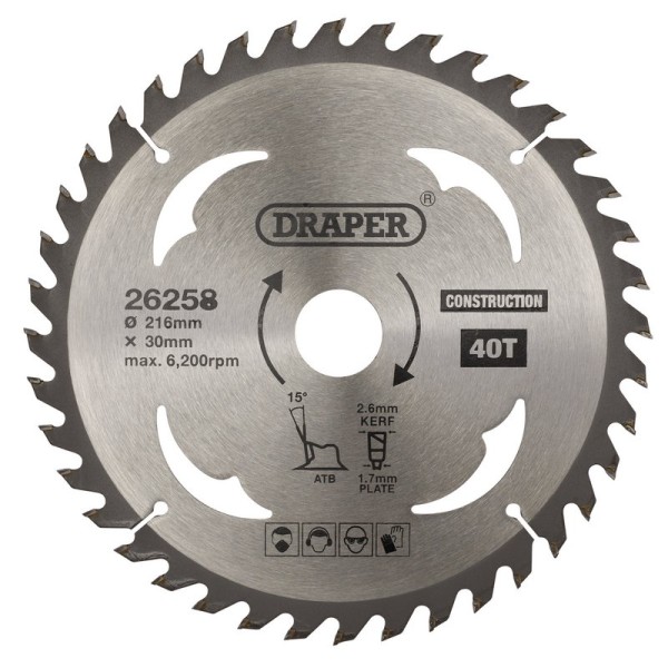 Draper TCT Construction Circular Saw Blade 216 x 30mm (40T) has been added to your cart