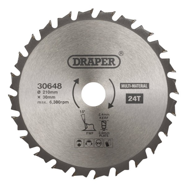 Draper TCT Multi-Purpose Circular Saw Blade 210 x 30mm (24T)