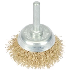 FEATURES:Brassed crimped steel wire with 6mm diameter shank. Display packed.Diameter 50mm..