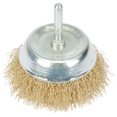 FEATURES:Brassed crimped steel wire brush with flat trim. 6mm diameter shanks. Brush length 25mm. Display packed.Diameter 26mm..