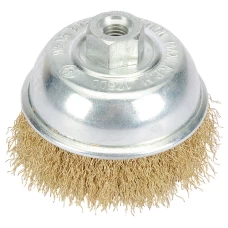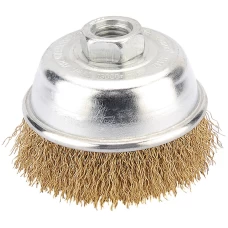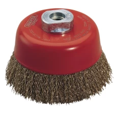 FEATURES:Manufactured from 0.3mm hardened brassed steel wire. Designed for use with angle grinders. M14 thread. Display packed.Diameter 100mmSpeed RPM 8500r/min..
