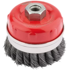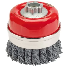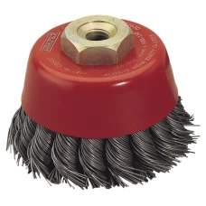 FEATURES:These twist-knot wire cup brushes are designed for heavy-duty work and delivers aggressive stock removal on stainless-steel and other non-ferrous metals. The brush is made from hardened stainless-steel wire, which gives a high level of durability and performance. The twist-knots are tight for a longer life and the twisted construction is perfect for quicker material removal in deburring and cleaning tasks. The cup shape works flat to the surface to cover a large surface area. Compatible..