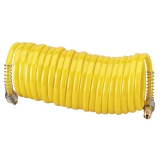 A kink resistant recoil type air hose which allows easier access in tight working areas. Perfect for the workshop and industrial user. The 10m hose contracts to a fraction of its working length when not in use, providing an excellent space saving and safer solution to a cluttered workspace. The hose is supplied with steel and silver spring protectors and solid brass 1/4" BSP male connectors with anti-kink coils.Working pressure: 125psiWorking length: 7mInternal diameter: 6mmExternal diameter: 10..
