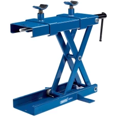 Support stand with scissor style lifting mechanism, suitable for use either on a motorcycle lift or on the floor. Top of the platform has two sliding "U" shaped supports enabling the lift to hold motorcycle subframe down tubes. Carton packed.Suitable for use either on a motorcycle lift or floorAdjustable U-shaped saddles for secure liftingRubber coated saddles to protect paintworkBall bearing rollers for smooth operationCompact fold-down design for easy storageCapacity 500kg..