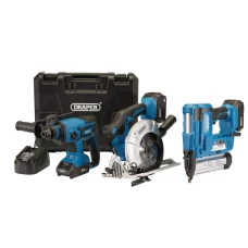 FEATURES:A Draper D20 bundle including a powerful SDS+ rotary hammer drill, a handy cordless circular saw, and a useful nailer/stapler, supplied with a 5.0Ah battery, two 2.0Ah batteries and a charger. A great kit for a host of activities, especially useful in the construction and fabrication industries. The SDS+ rotary drill and circular saw feature brushless motors for enhanced performance.CONTENTS:1 x D20 20V Brushless SDS+ Rotary Hammer Drill1 x D20 20V Brushless Circular Saw1 x D20 20V Nail..