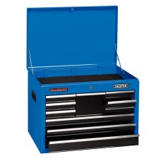 FEATURES:Expert Quality, six drawer top tool chest. Manufactured from thick sheet steel with a protective powder coated finish. Drawers are fitted with an aluminium trim, 3mm EVA foam linings, heavy duty auto retention ball bearing runners delivering a smoother operation and a secure locking system supplied with two keys. The reinforced lid is fitted with supportive gas struts, plastic document holder and two soft grip handles. Each tool chest is also supplied with a 6mm EVA top mat. Carton pack..