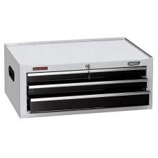 2 drawer intermediate tool chest manufactured from sheet steel with a powder coated finish and aluminium effect trim. Drawers are fitted with ball bearing runners for smoother operation and a protective foam liner. Each tool chest is fitted with heavy-duty carry handles and a secure integral locking system supplied with two keys. Carton packed.ContentsDrawer configuration: 1 drawers: 570 x 273 x 74.5mm 1 drawer: 570 x 273 x 100.5mmWeight 10.381kgsDimensions 670 x 315 x 26..