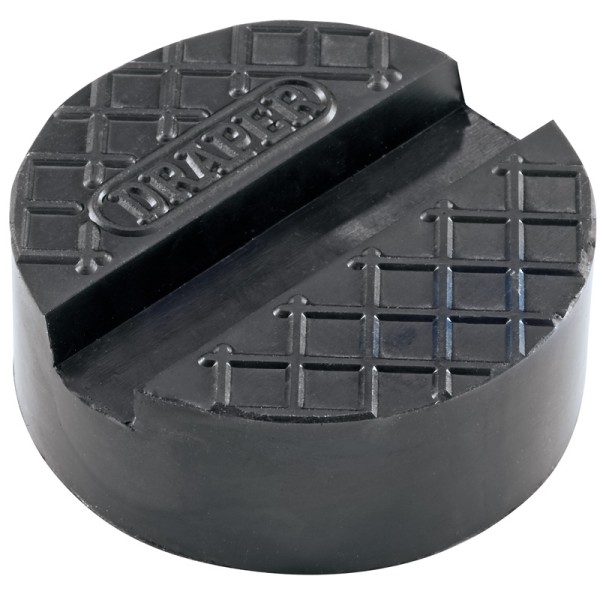Large rubber pad designed to work with heavy duty trolley jacks for use on standard chassis vehicles. Designed to avert damage to the underside of a vehicle. Made from durable and robust rubber. The slotted feature enables the pad to be used on car sills whilst stopping the sills from collapsing under pressure. For use with standard chassis trolley jacks with a saddle diameter of over 50mm.