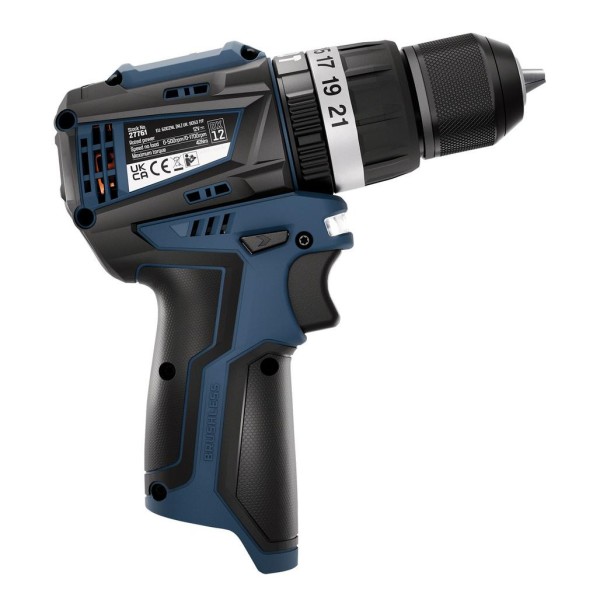 This cordless combi drill is part of the DXPULSE 12V Interchange Series and offers three functions: drilling, screwdriving, and hammer drilling. The brushless motor enhances efficiency, offering more power and a longer battery life. It features a 10mm metal keyless chuck, 21+3 torque settings, forward/reverse, a 2-speed gearbox, a variable speed trigger, and an LED worklight. Its compact design makes it ideal for use in tight spaces. Weighing less than 1 kg, it is easy to use, and the soft grip handle ensures comfort during extended use. It is powered by a 12V lithium-ion battery, and there is an LED battery level indicator. Comes complete with 2 x 2.0Ah batteries and 1 x charger, a range of screwdriver bits, bit holder and HSS drill bit in a sturdy plastic storage case.