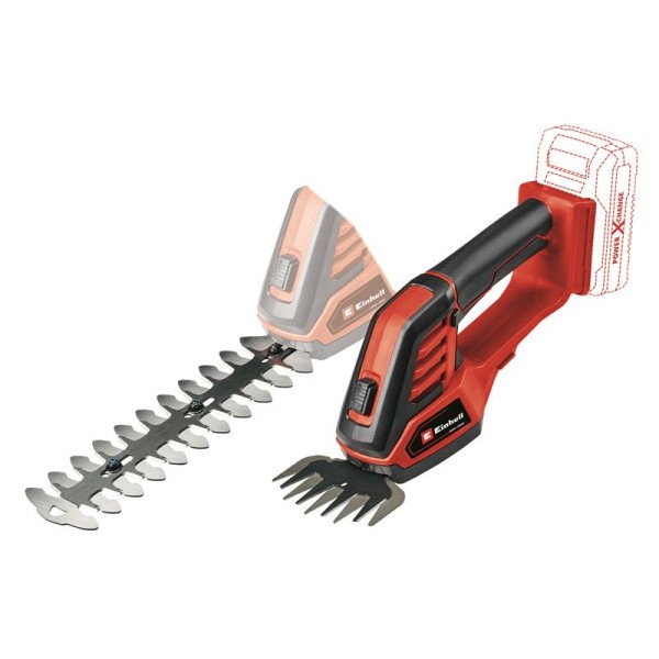 The Einhell GE-CG 18/100 Li-Solo Power X-Change Grass & Bush Shear is a convenient alternative to hand-operated pruning saws or garden shears. It is also lighter, quieter and more versatile than the petrol-powered or electronic versions and is therefore an ideal helper when it comes to pruning, shaping and thinning out shrubs and trees.