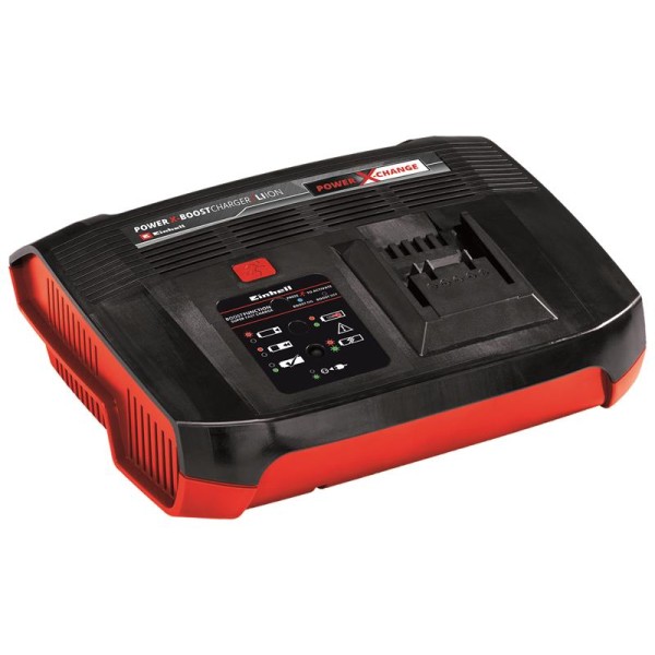 The Einhell Power X-Boostcharger 6A can be used to charge all Power X-Change rechargeable batteries. Its selectable boost mode can be used to significantly reduce the charging times, up to 50%. In addition, intelligent charging management provides extra safety: For optimum charging, the battery is permanently monitored while charging is in progress. Refresh mode allows deeply discharged batteries to be reactivated. The 6-stage status LED display keeps users informed on battery status. For user-friendly wall-mounting there are integrated suspension eyelets.
