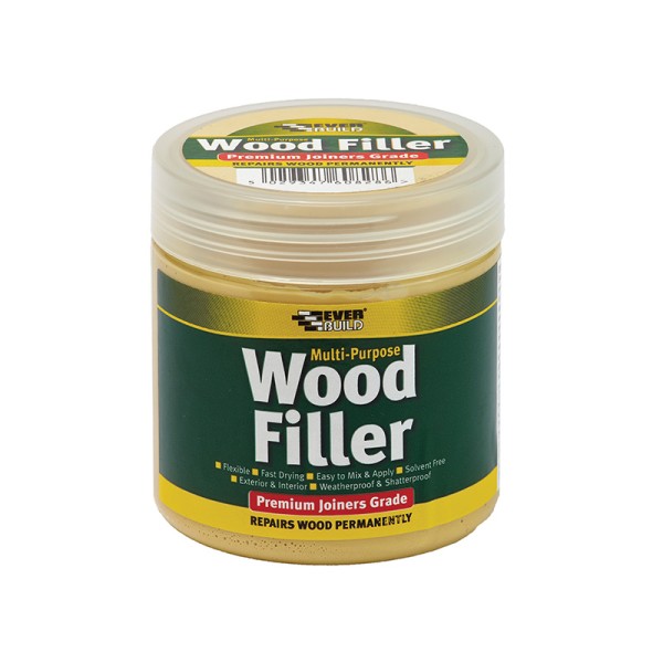 Everbuild Multi Purpose Premium Joiners Grade Wood Filler is an easy to use ready mixed filler which is ideal for filling small imperfections (Max 5mm depth) in wood. Once dry, the filler leaves a sandable surface, which can be stained, painted, varnished or dyed, even with microporous stains.