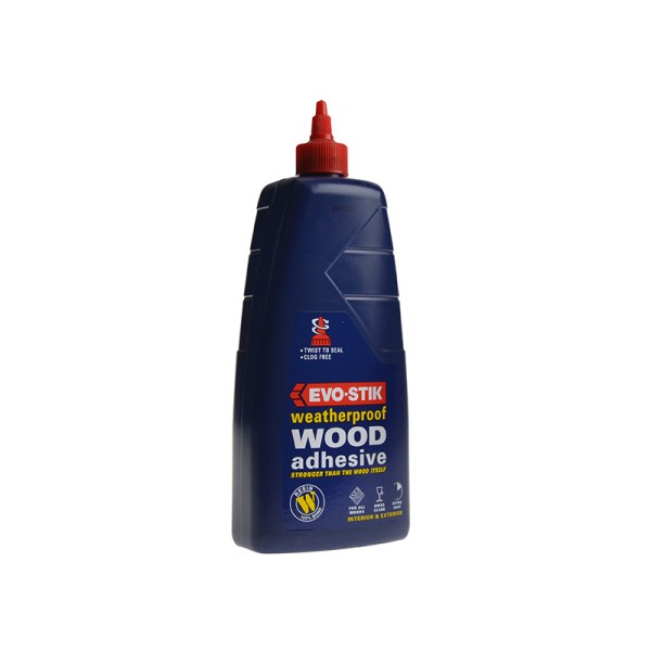 EVO-STIK Wood Glue Exterior is fast setting, extra strong and weatherproof, complies with EN 204 Type D3. Suitable for interior or exterior use and dries to form a bond stronger than the wood itself. Dries to a clear finish that can be sanded, painted or stained. The anti-roll bottle has a no mess, clog-free nozzle and twist to seal cap.