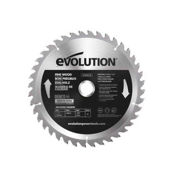 Evolution Fine Wood Mitre/Table Saw Blade 185 x 20mm x 40T has been added to your cart