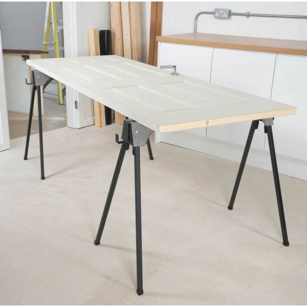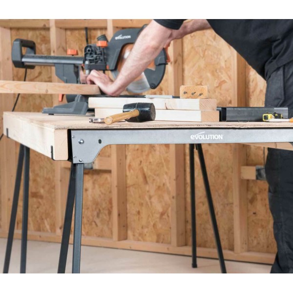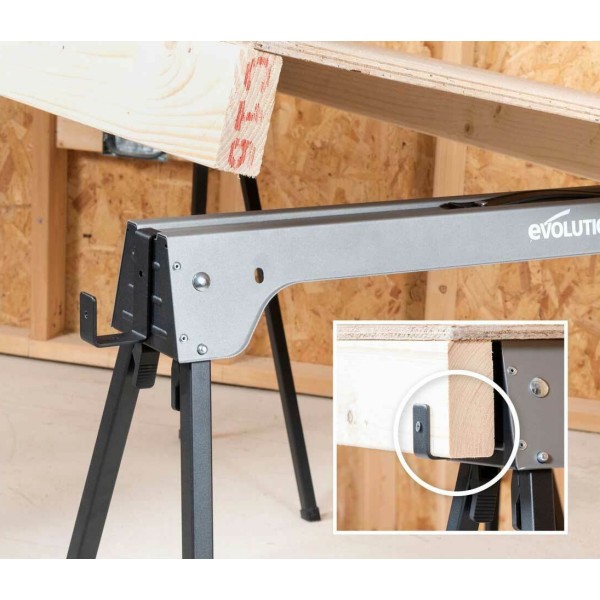 The Evolution Metal Folding Sawhorse Stand is ideal for setting up a sturdy and reliable worktop. Each sawhorse boasts an incredible supporting weight of up to 500kg, giving you peace of mind when cutting. Whether it's logs or large sheet materials, simply space the horses accordingly to provide a flat platform every time.