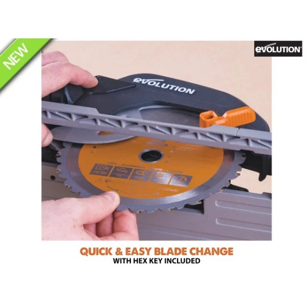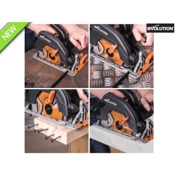 The Evolution R185CCS Circular Saw is ideal for both trade and DIY users thanks to its powerful motor and optimised gearbox. When combined with the Evolution R185TCT-20CS blade (supplied) it can cut through a variety of materials such as mild steel, aluminium, wood (even with embedded nails), plastic, copper, PVC and more.
