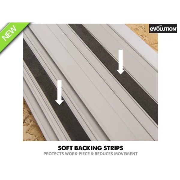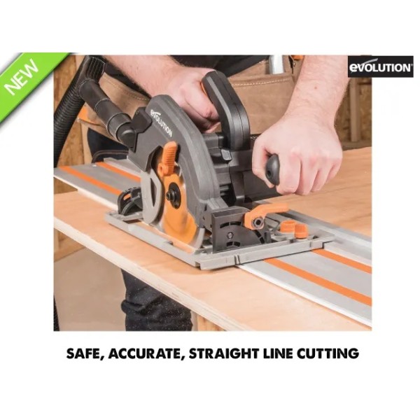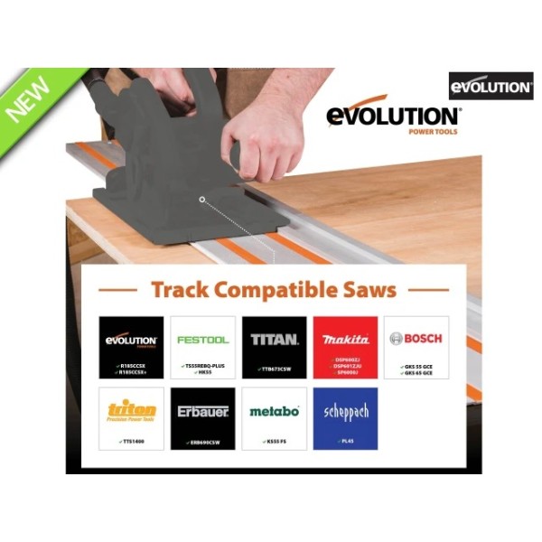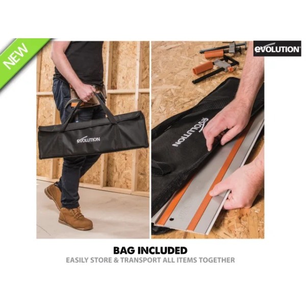 The track comes in a carry bag for easy transport and also provides protection from damage around the workplace. The track is designed to fit the Evolution R185CCSX and the R185CCSX+ saws, but is also compatible with many other brands of plunge/track saw.