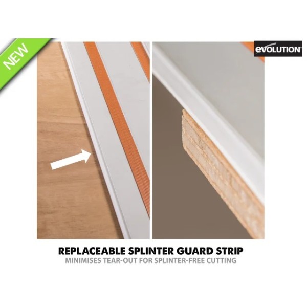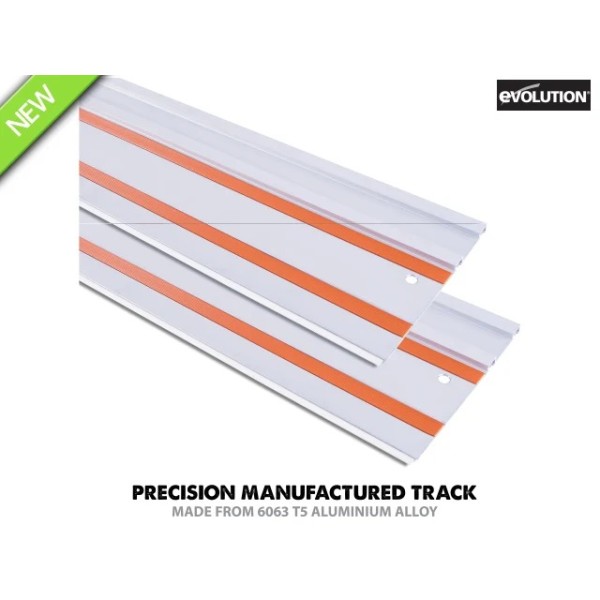 The Evolution Saw Track is perfect for making long, accurate cuts in sheet materials, doors, window frames and worktops. The track sections are joined together to create a longer track that is lightweight and sturdy. The track attaches to the workpiece via the end clamps (provided) and the integrated splinter guard prevents tear out.