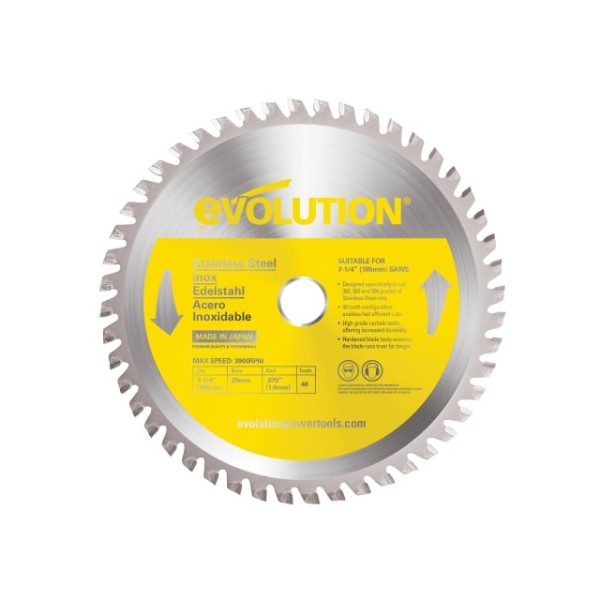 Evolution Stainless Steel Cutting Circular Saw Blade delivers maximum performance by using the highest grade carbide, hardened blade bodies and ultra high-grade brazing techniques to increase production and performance.